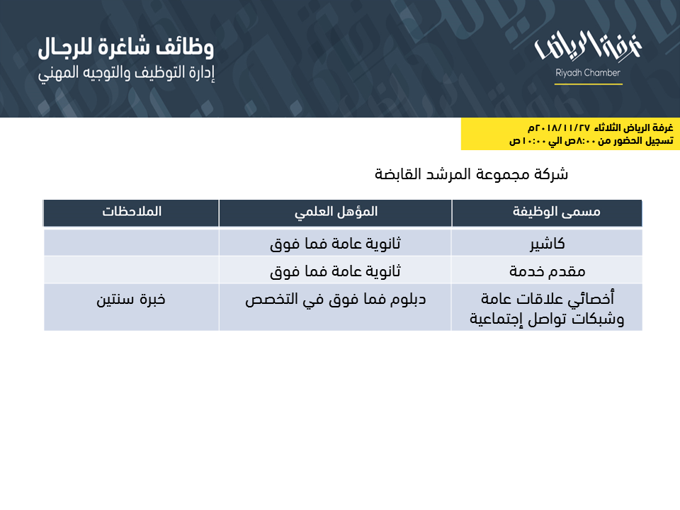وظائف غرفة الرياض الرجالية لهذا الاسبوع