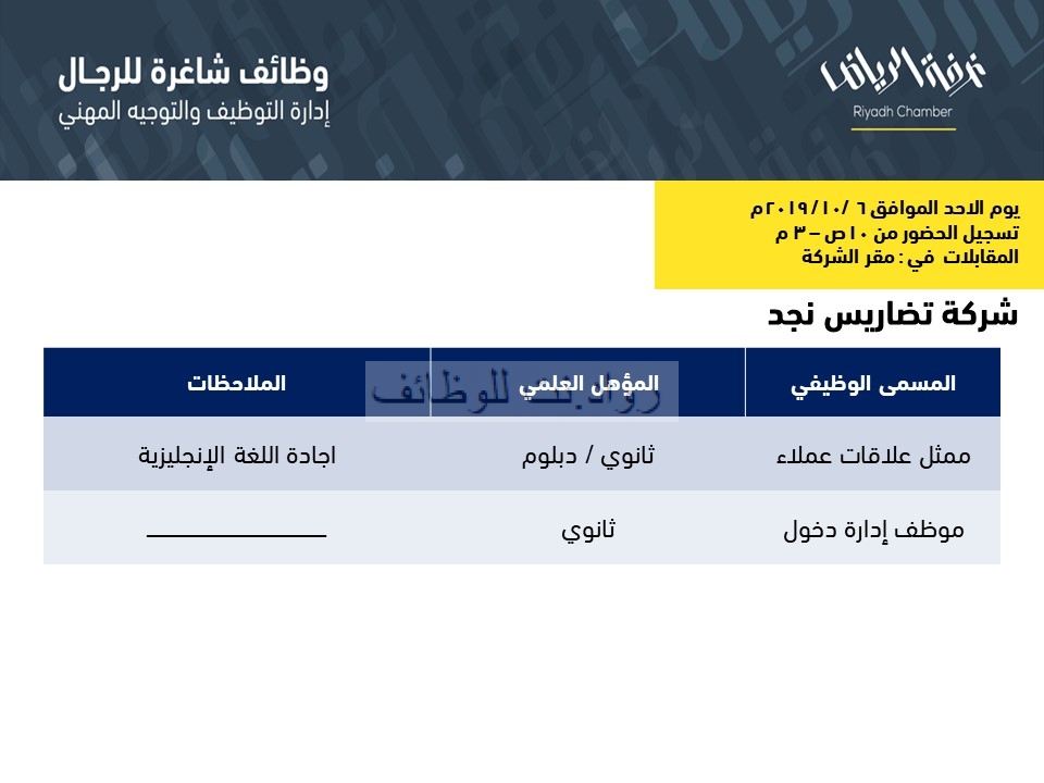 وظائف إدارية وصحية وفنية وأمنية لجميع المؤهلات غرفة الرياض خليجي كوم
