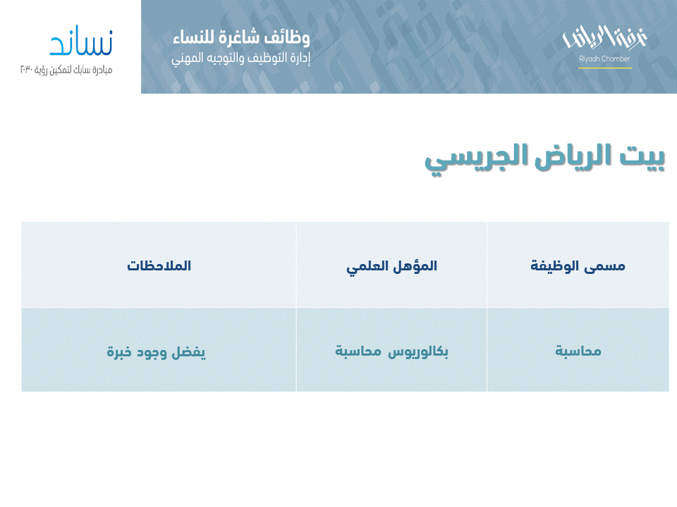 غرفة الرياض وظائف نسائية للاسبوع القادم هندسة ومحاسبة وتسويق